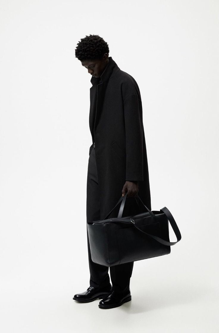 Premium leather travel bag — minimalist silhouette, spacious main compartment, quick-access pocket;...